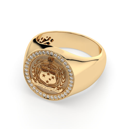 9ct Tongan Coat Of Arms Ring with Natural Diamonds