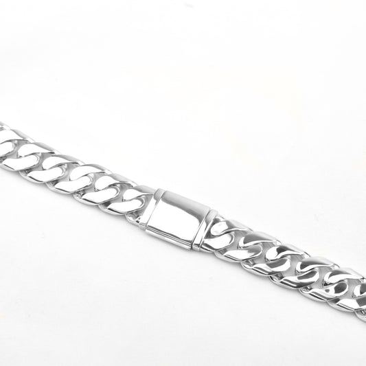 Sterling Silver Flat Curb Link Bracelet With Special Clasp